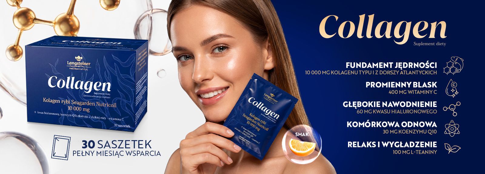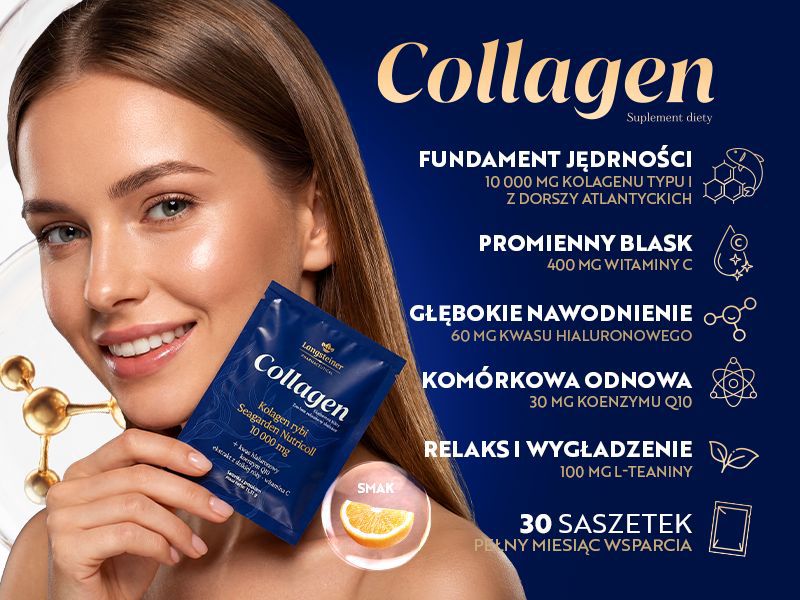 Kolagen morski najwyższej jakości, wzbogacony kwasem hialuronowym, koenzymem Q10 i witaminą C – wspiera jędrność skóry, witalność i naturalne piękno od wewnątrz.
